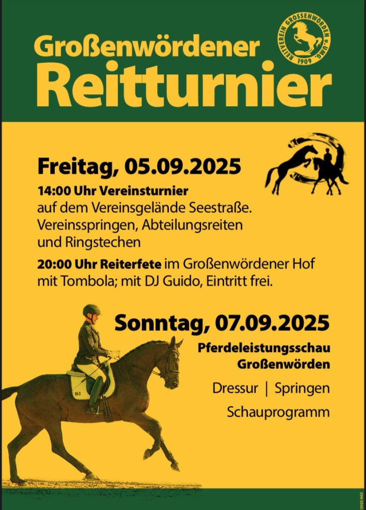 Die Ausschreibung für das öffentliche Reitturnier am 07.09.2025 kann hier eingesehen werden.